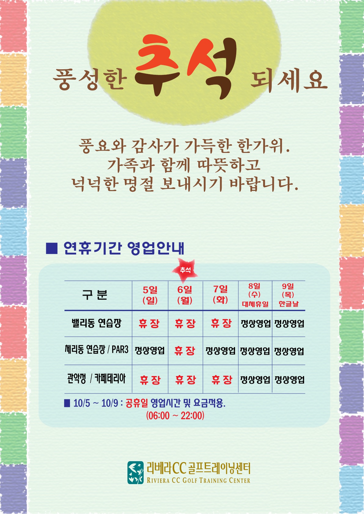 2025년 추석연휴 운영안내