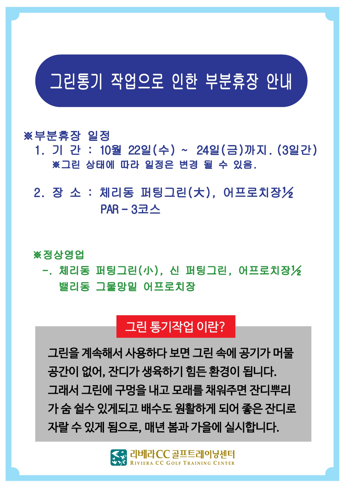 그린 통기작업 부분휴장 안내